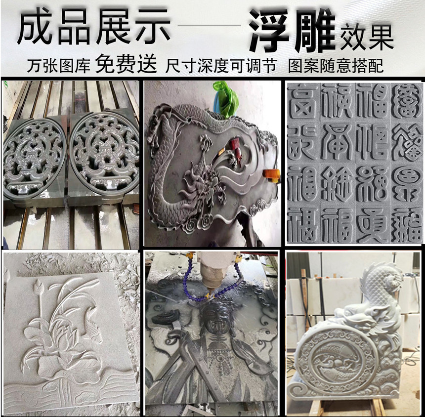 主要用于天然大理石、花崗巖、人造石、墓碑、里程碑、瓷磚、玻璃等材料的三維浮雕及線雕、切割、倒邊、鉆孔、二維雕刻。特別適合做墓碑雕刻,刻字,線條,室內室外浮雕,可做立體人物佛像、石獅子、華表等旋轉立體工件和普通平面雕刻。