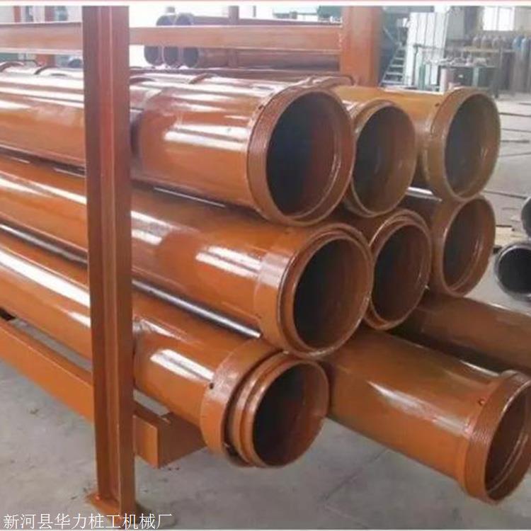 基礎導管采用厚度4mm,無縫鋼管,羅紋接頭采用鍛壓件,接頭雙面焊接。絲扣為梯形,無縫管與接頭車床校正,確保導管的垂直度,二保焊接。基礎導管臥地連接通過加水,氣試壓壓力達到10公斤無漏水,確保基礎樁灌注混凝土施工作業。出廠前本產品采用水氣混試加壓實驗。本產品已用于各大工程橋梁及高層建筑基礎施工,深受用戶青睞。