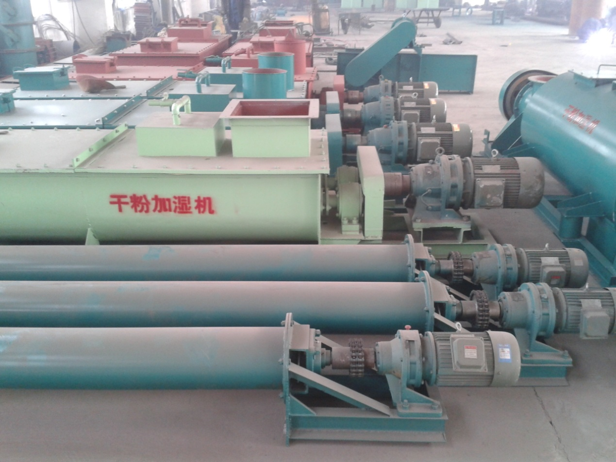 雙軸粉塵加濕機采用擺線針輪減速器傳動,轉動平穩,噪音低。雙軸加濕機從頂部進料,底部出料,結構合理。各結合面之間的密封嚴密,運行平穩。雙軸加濕機設有加濕噴水系統,保證噴水均勻,調節供水量來滿足需要。雙軸粉塵加濕機采用手壓油泵集中供給四個傳動軸承潤滑油脂,方便設備的使用維護,具有 省時的優點。粉煤灰由下料口進入攪拌槽后,經過加水霧化、攪拌后進入卸料口排出。該設備適用于燃煤電站干灰輸送系統,做干灰加水攪拌用。該機可以順利地將干灰制成含水率為25%左右的濕灰,裝車外運。該機具有結構緊湊,攪拌均勻,無揚塵,符合環保要求等優點。處理量10-200噸/小時。