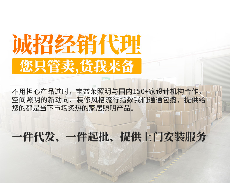 寶益萊照明成立于2014年,致力于燈飾照明產品的自主研發、設計、生產與銷售,形成了以家居照明為主的LED照明品牌,產品涵蓋家居燈飾、商業照明等品類,產品包括LED吸頂燈,LED裝飾吊燈,兒童房燈,客廳燈,臥室燈,壁燈,風格從現代簡約、北歐至簡、歐美風尚、中式古典、新中式等一應俱全,品類豐富、款式齊全,滿足消費者的一站式購物需求。